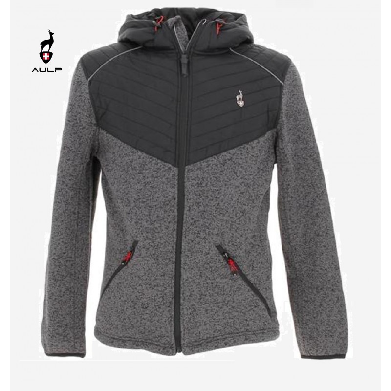 Veste polaire hybride AULP homme à capuche , matelassée/ chinée Homme Noir
