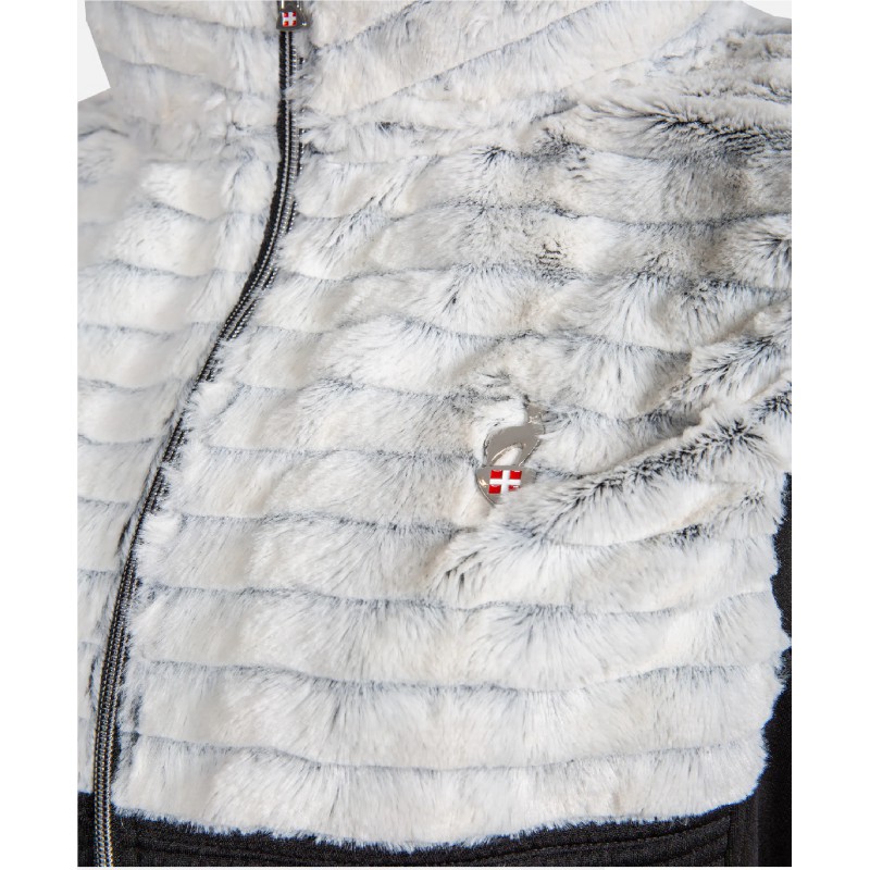 Gilet sans manche femme tri-matière noir/blanc avec fausse fourrure